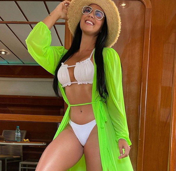 Graciele Lacerda, influencer, causou novamente na rede social. De biquíni branco, chapéu, óculos, cabelão e saída de banho verde e pernões torneados. Os elogios foram inevitáveis.
