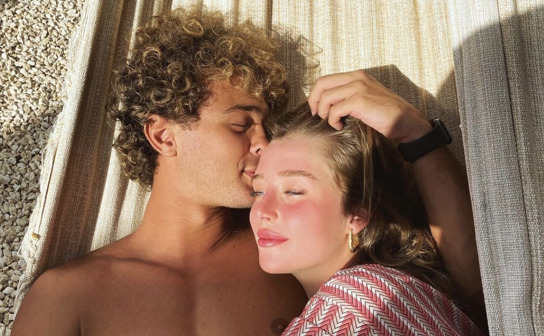 Duda publicou uma foto deitada na rede no colo do namorado, em um clima bem romântico. Ao receber chamego do ator, escreveu na legenda: “abrigo”.