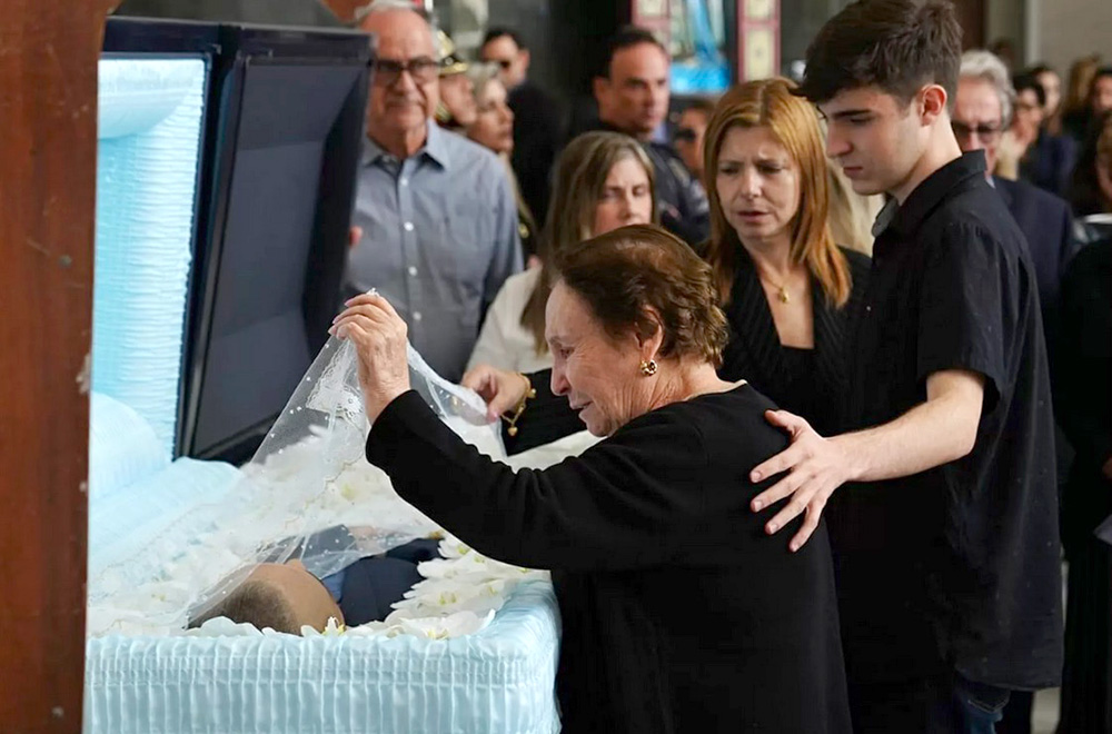 Forte emoção de familiares marcam velório e sepultamento de Gugu; corpo foi levado caminhão dos bombeiros