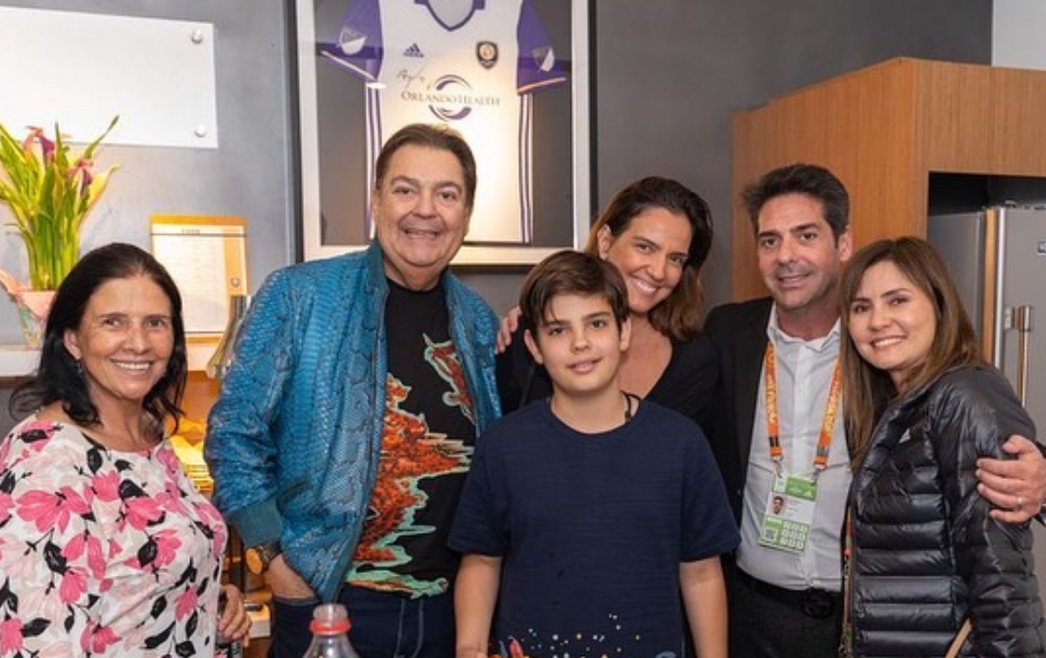 O apresentador Faustão foi com familiares aos Estados Unidos aproveitando alguns dias de folga. Ele e a esposa Luciana acompanharam o filho, Rodrigo, 11 anos, na partida final do Florida Cup.