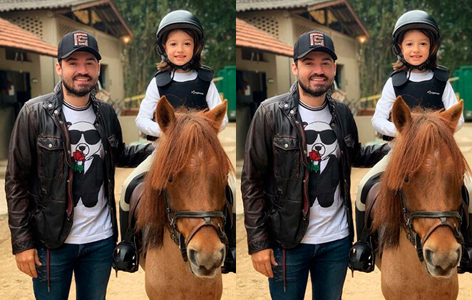 Durante a tarde, o cantor compartilhou no Instagram Stories a menina na aula de montaria e dando os primeiros trotes.