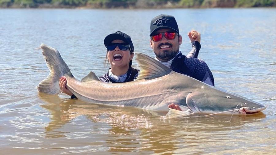 O desafio foi lançado após Maiara postar uma foto com Fernando no rio segurando um peixe de porte grande e na legenda escreveu ‘Ele sempre falou que ia pegar um peixe maior que eu! Bateu na trave!”