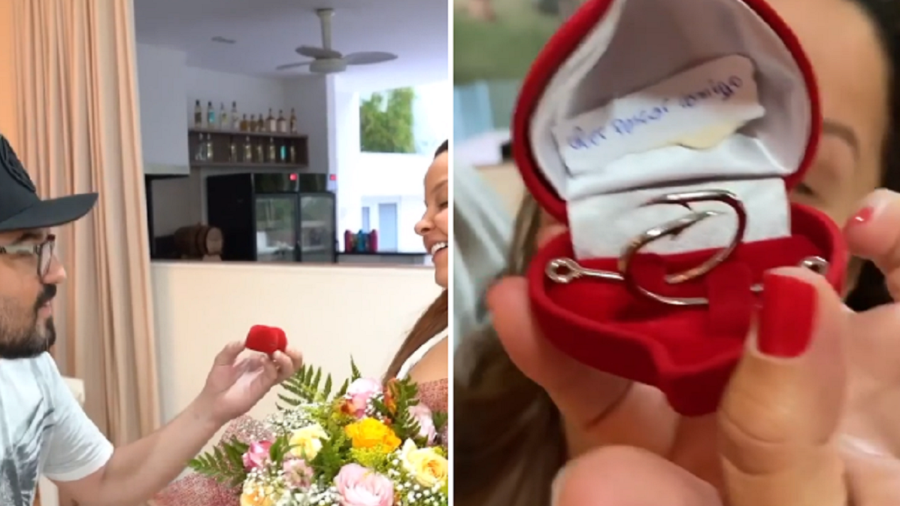 Ao receber os presentes, Maiara percebeu que o namorado trocou o anel de noivado por dois anzóis. Ele ainda deixou um bilhete com a frase: “Quer pescar comigo?”. Ela levou a situação na brincadeira, mas aproveitou para tirar onda da situação.