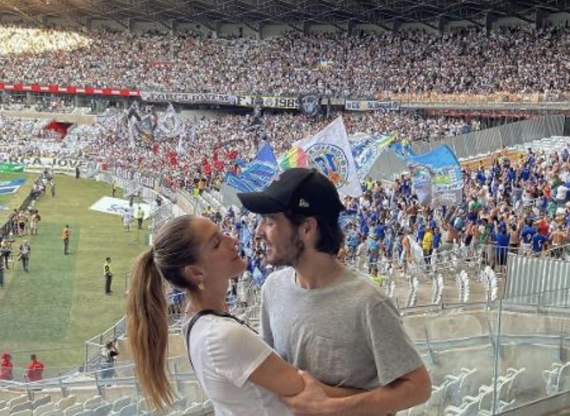 O casal foi assistir o clássico pelo Campeonato Mineiro, disputa estadual, no qual o time Atlético-MG saiu vitorioso e levou a partida por 2 a 1. Na legenda, o filho do apresentador apenas colocou dois emojis que sinalizam os times.