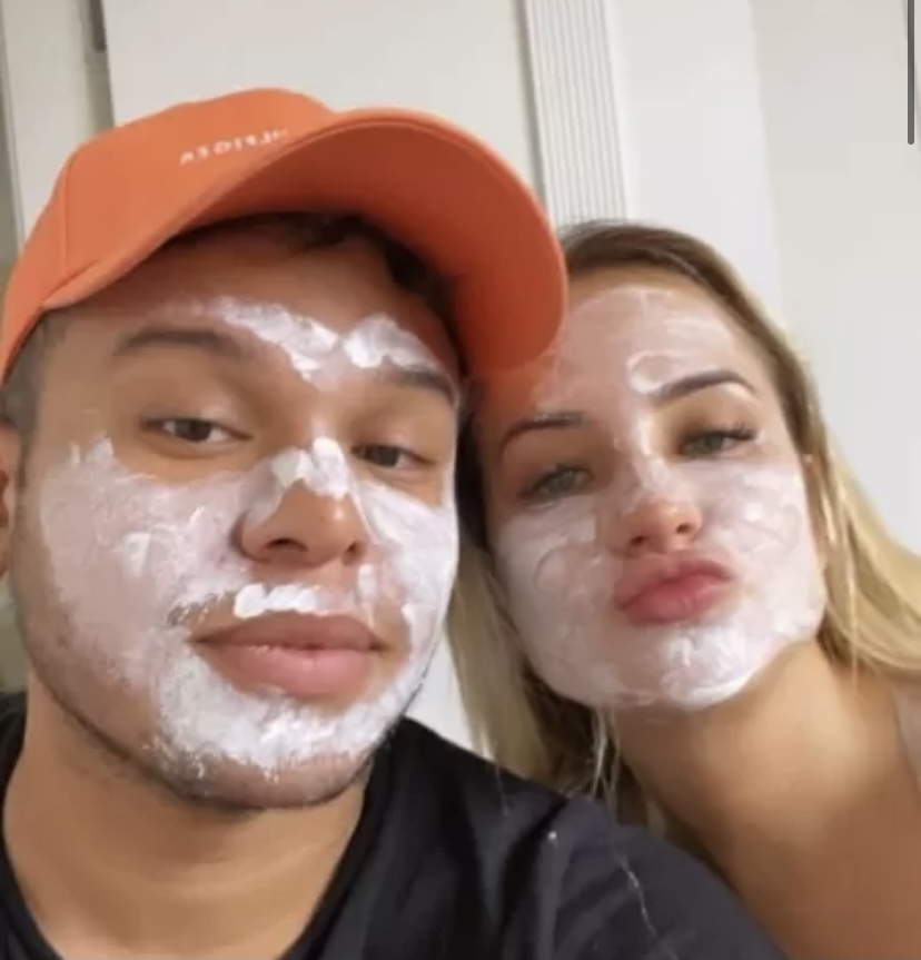 Gabi Martins compartilhou no instagram um vídeo usando uma máscara facial e convencendo o namorado, Tierry, a fazer o skincare também. No começo, ele não queria muito. Mas depois se rendeu — e até ajudou a amada a convencer o pai a passar o creme também!