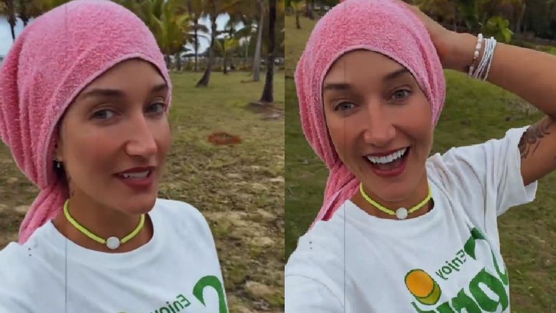 Gabriela Pugliesi esteve aproveitando a folga na Bahia, onde se hospedou e passou por um perrengue devido ao mau tempo. Nas redes sociais, a influenciadora surgiu com uma toalha na cabeça enquanto se locomovia em um quadriciclo.