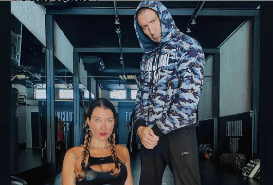 Ao publicar a foto ao lado de seu mestre de funcional fight, Gabriela surgiu empolgada e legendou: ‘Voltei malvada!’