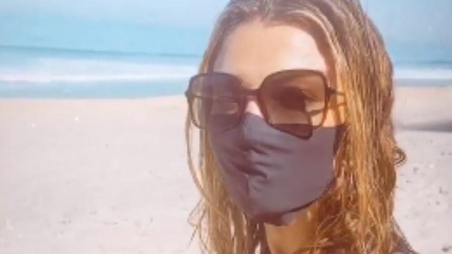 No instagram, Grazi Massafera publicou um vídeo onde aparece aproveitando o dia de sol para passear na praia. Ela aparece andando à beira do mar, de óculos escuro e protegida com uma máscara.