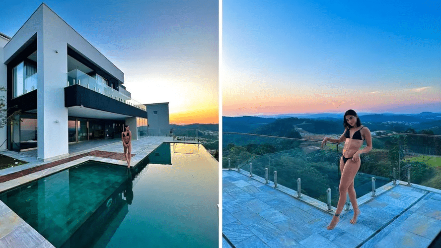 Nos cliques, a influenciadora ainda pareceu de biquíni na piscina da residência. “Há 13 anos eu morava numa casa em uma comunidade em Bauru chamada Ferradura Mirim e saí de lá atrás de um sonho, eu não tinha nada eu vim do pouco. Hoje sinto vontade de chorar olhando para essa casa onde estou morando. Era difícil de ter, mas eu trabalhei dia e noite e Deus me abençoou e mudou os meus planos. Hoje tô aqui pra provar para mais de 12 milhões de pessoas que quem sonha alto pode estar no topo! Quem está no corre a vitória vem com o tempo, acredite! E a vida te ensina a dar valor em tudo. Nunca esqueça que Deus lá de cima tá vendo o seu esforço, acredite naquele que sempre te deu proteção senhor, naquele que olha pra você todos os dias lá de cima. Toda honra e toda glória ao senhor obrigada”, escreveu na legenda da postagem.