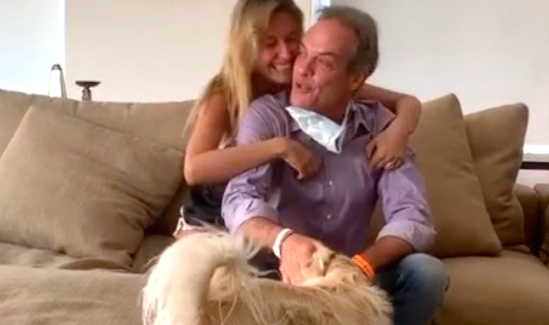 “Meu marido está em casaaaaaa!!!!! Eu não consigo aguentar de tanta felicidade! Obrigada Deus! Obrigada a cada um de vocês que torceu, rezou. Ainda tem que acabar o tratamento em casa. Não podemos sair nos próximos 14 dias! Mas eu estou tão feliz!!!!!!!! Que felicidade! Obrigada!”, escreveu como legenda do vídeo.