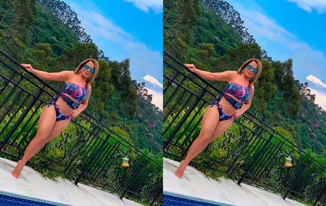 Na foto do Instagram, Zilu estava na piscina, vestia um biquíni maravilhoso da Catarina Fernandes Beach Wear e arrasou na pose.
