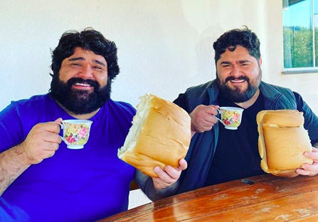 No instagram, ele compartilhou uma foto e na legenda escreveu ” A nutri disse que um pãozinho no café da tarde pode. Eu e meu irmão estamos seguindo a orientação.”