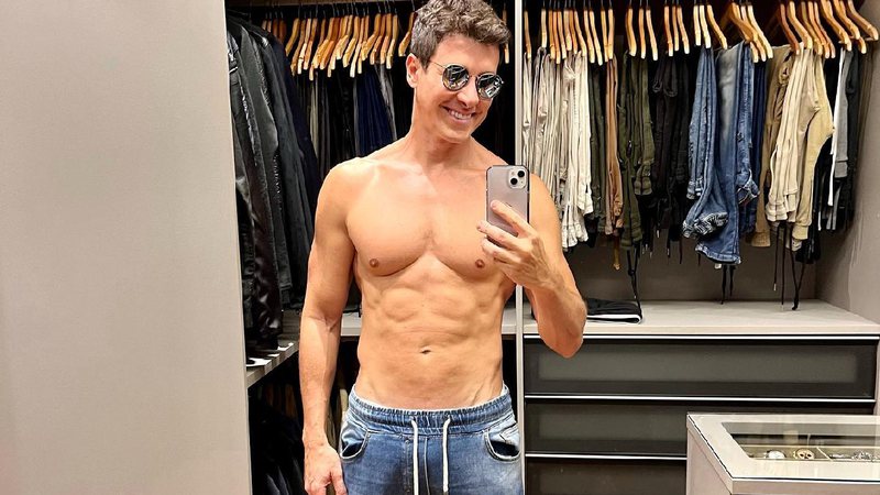 Rodrigo Faro, de 48 anos, causou frenesi nas redes sociais, nesta terça-feira (12/04), ao ostentar o tanquinho em uma selfie no closet de sua mansão, levando os fãs à loucura com os registros.