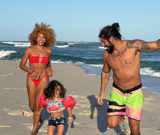 “De volta a realidade com saudades do sol de ontem”, comentou a atriz, compartilhando os registros feitos ao lado da família.
