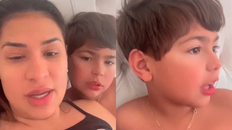 “Madrugada foi insana, chegou um cidadãozinho aqui no meu quarto”, começou Simone. Em seguida, seu filho, que estava deitado em uma cama ao lado da mãe, detalhou o que aconteceu. Henry é fruto do relacionamento de Simone com Kaká Diniz.