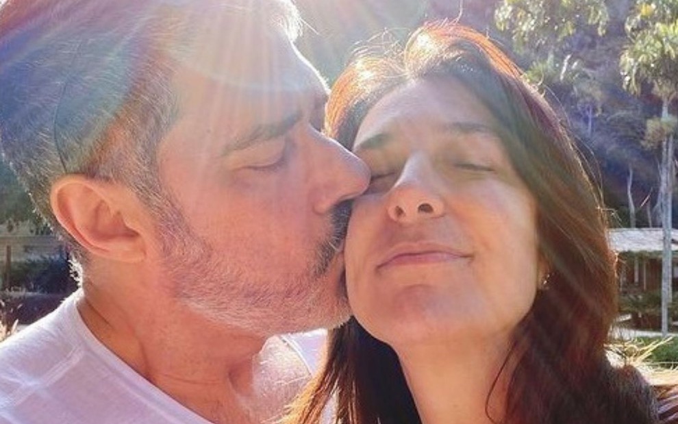 Mulher de William Bonner, Natasha Dantas compartilhou uma foto romântica ao lado do jornalista neste domingo. A fisioterapeuta, que é casada com um âncora e editor-chefe do Jornal Nacional desde 2018, apareceu recebendo um beijo no rosto do marido.