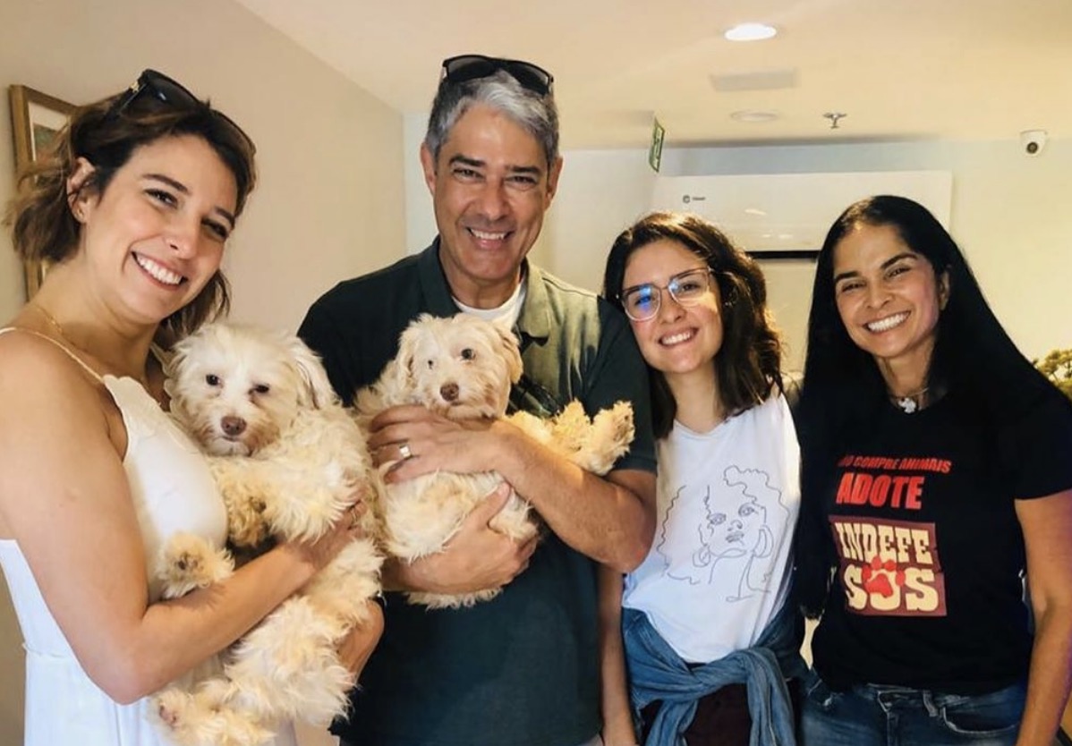 O jornalista William Bonner e a esposa Natasha Dantas foram a uma feira de adoção de animais e adotaram dois cachorros, irmãos. A ONG Indefesos, no Rio de Janeiro, publicou, no Instagram, foto do momento da entrega dos animais. Willian e a esposa posaram com eles juntamente com Laura, filha de Willian e Fátima Bernardes.