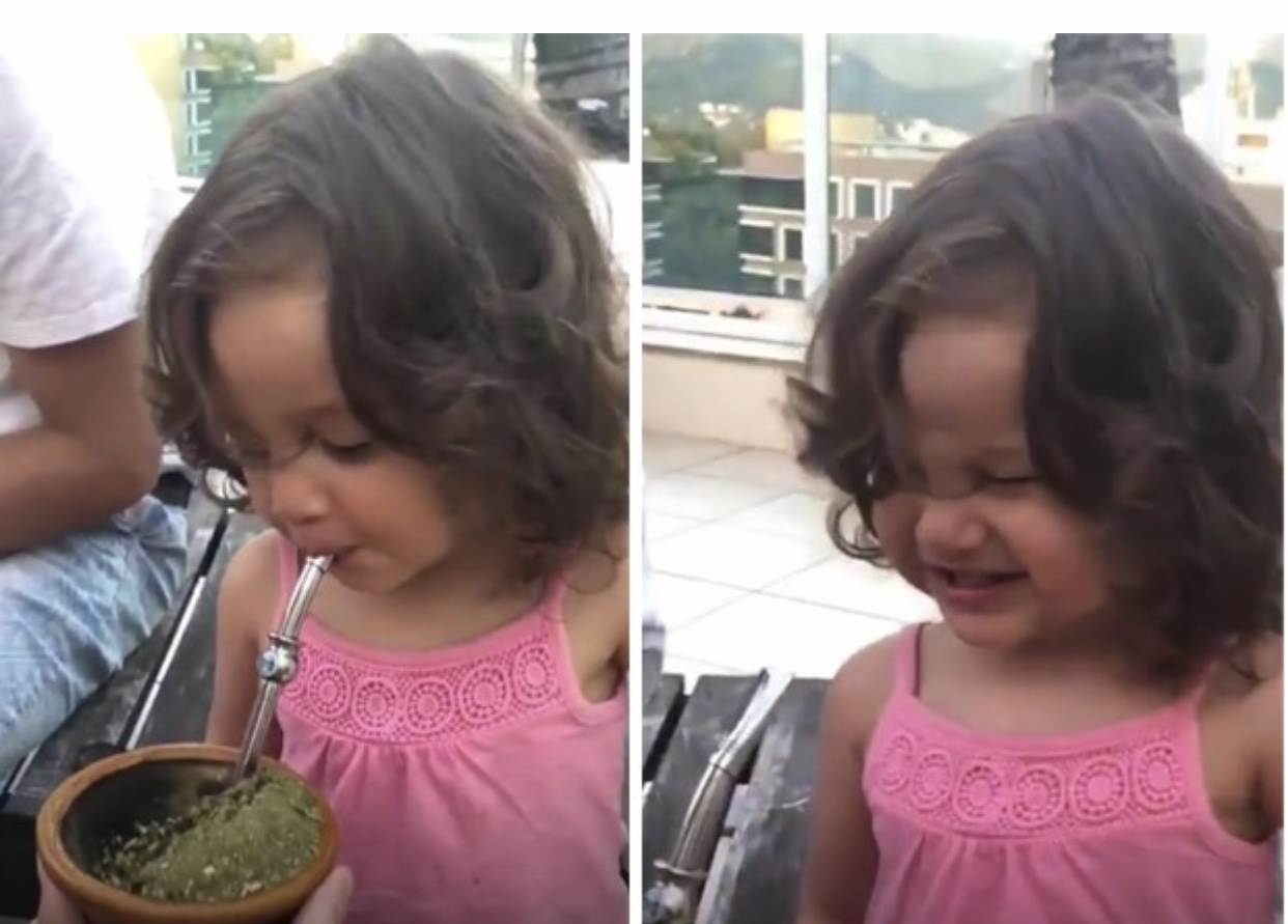 Madalena, filha de Yanna Lavigne e Bruno Gissoni, se deliciou com um chimarrão no último domingo (11). O momento foi registrado pela atriz nas redes sociais, que está no elenco de O Sétimo Guardião. “Meu primeiro chimarrão”, escreveu a atriz. Apesar do gosto amargo, Madalena se deliciou e tomou bastante chimarrão.